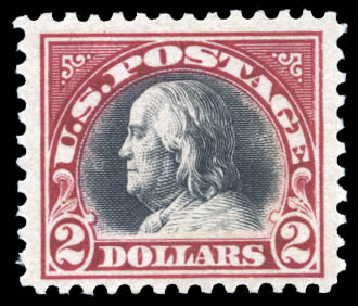 1920, $2 Franklin, carmine & black (Scott 547), fresh, o.g., very lightly hinged, almost Very Fine. Scott $125.