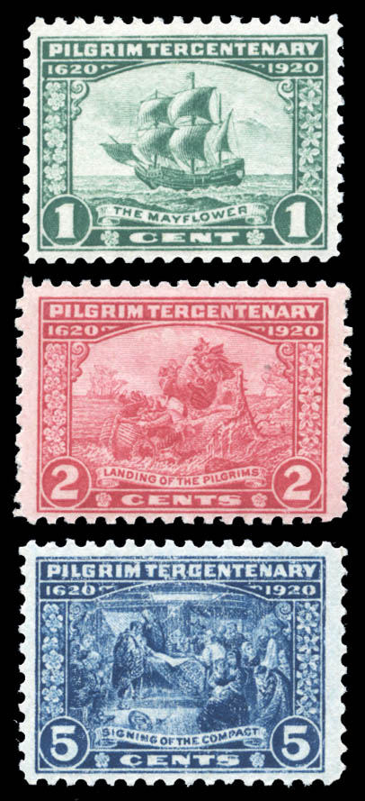 1920, Pilgrim issue complete (Scott 548-550), a lovely well centered set, o.g., never hinged, Very Fine. Scott $94.