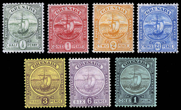 Grenada, 1906-11, Colonial Seal, ½d to 5s complete (SG 77/80, 84/88. Scott 68-76), set of 9, o.g., hinged, Fine to Very Fine. SG £140 ($180). Scott $186.