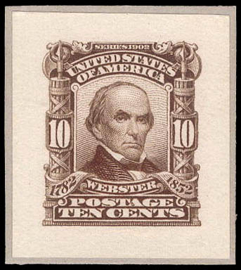 1903, 10¢ Webster, "Roosevelt" small die proof (Scott 307P2), Extremely Fine. Scott $300.