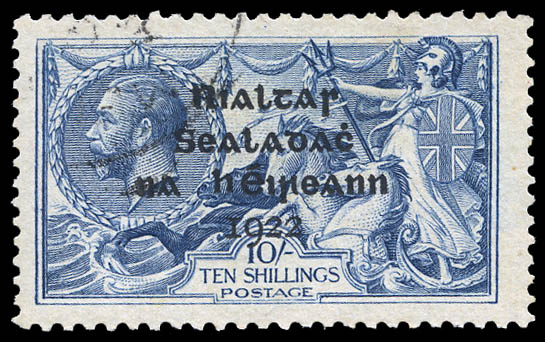 Ireland, 1922, Dollard Provisional Govt. overprint on King George V "Seahorse", 10s dull gray blue (SG 21. Scott 14), light c.d.s., Fine to Very Fine. SG £450 ($570). Scott $400.