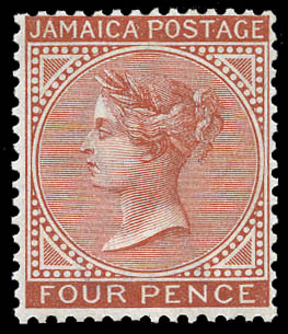 Lote 295![]() ![]() Jamaica, 1860, Queen Victoria, 4d brown orange (SG 4. Scott 4), o.g., never hinged, Fine. Catalog values are for hinged, never hinged carries a premium. SG £300 ($380). Scott $275. Estimate $120 - 180. |