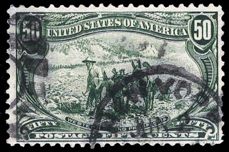 1898, 50¢ Trans-Miss. (Scott 291), well centered for this issue, beautiful partial strike of New York c.d.s. and registry cancel, Very Fine. Scott $175.