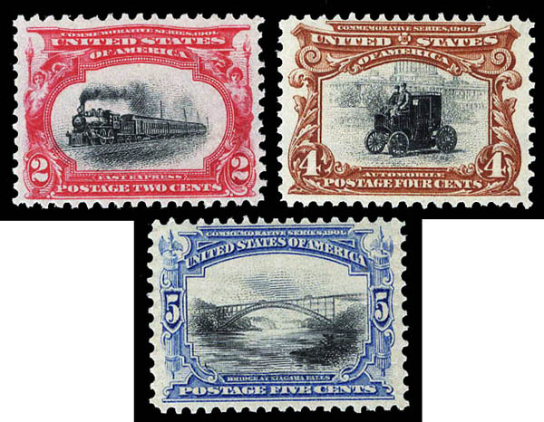 1901, 2¢, 4¢ and 5¢ Pan-Americans (Scott 295-297), a handsome fresh group, o.g., never hinged, Fine to Very Fine. Scott $387.