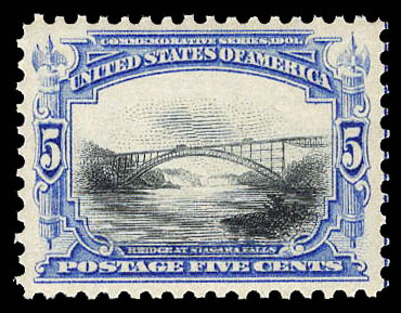 1901, 5¢ Pan-American (Scott 297), rich color and impression and well centered, o.g., never hinged, almost Very Fine. Scott $180.