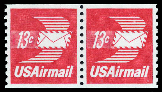 Airmail, 1973, 13¢ Winged Envelope coil (Scott C83), a wonderfully choice pair, o.g., never hinged, Superb, with 2021 P.S.E. certificate graded SUP 98. SMQ $110.