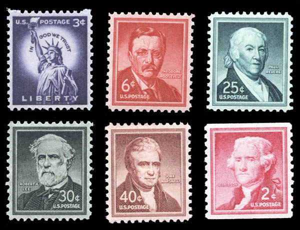 Lote 341![]() ![]() 1954, 3¢ Statue of Liberty, wet printing, and 5 other high quality definitives (Scott 1035), including # 1039, 1048, 1049, 1050a and 1055b, all with near perfect centering, o.g., never hinged, Extremely Fine to Superb. Estimate $50 - 75. |