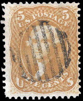 1861, 5¢ Jefferson, buff (Scott 67), excellent color, neat grid cancel, Fine. Scott $750.