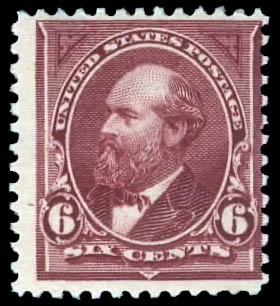 1895, 6¢ Garfield, D.L. watermark (Scott 271), rich color and sharp impression, o.g., never hinged, Fine. Scott $325.