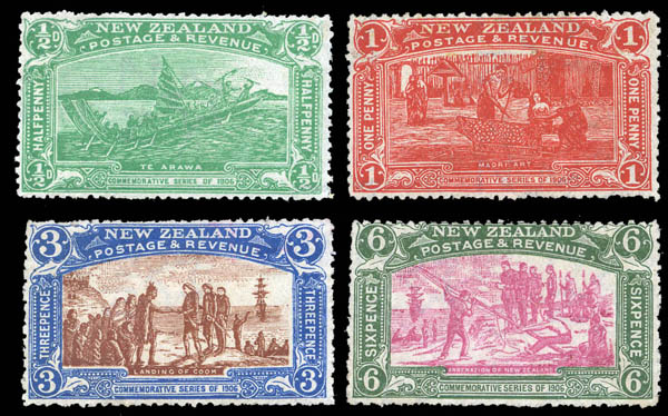 New Zealand, 1906, Christchurch Exhibition complete (SG 370/373. Scott 122-125), set of 4, o.g., hinged, Fine to Very Fine. SG £375 ($480). Scott $461.