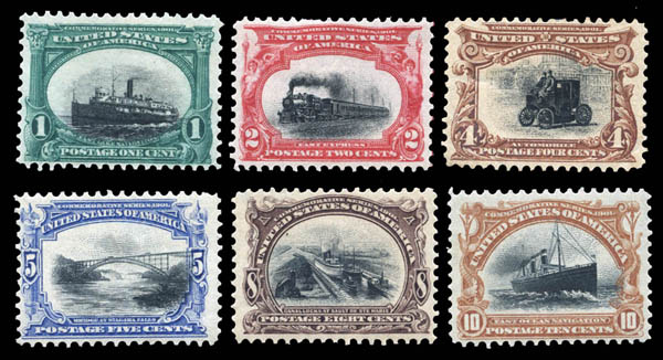 Lote 392![]() ![]() ![]() 1901, Pan-Americans complete (Scott 294-299), a nice set with attractive centering and fresh colors, o.g., all never hinged except 4¢ is hinged, Fine to Very Fine. Scott $858. Estimate $300 - 400. |