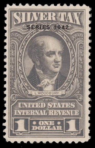Silver Tax, 1942, $1 Levi Woodbury (Scott RG95), o.g., lightly hinged, Very Fine. Scott $150.