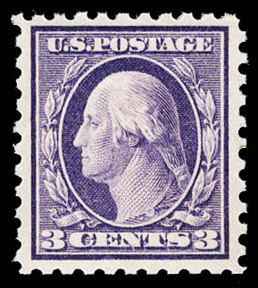 1916, 3¢ Washington, violet, unwatermarked, perf. 10 (Scott 464), lovely centering and bright fresh color, o.g., hinged, Very Fine or better. Scott $65.