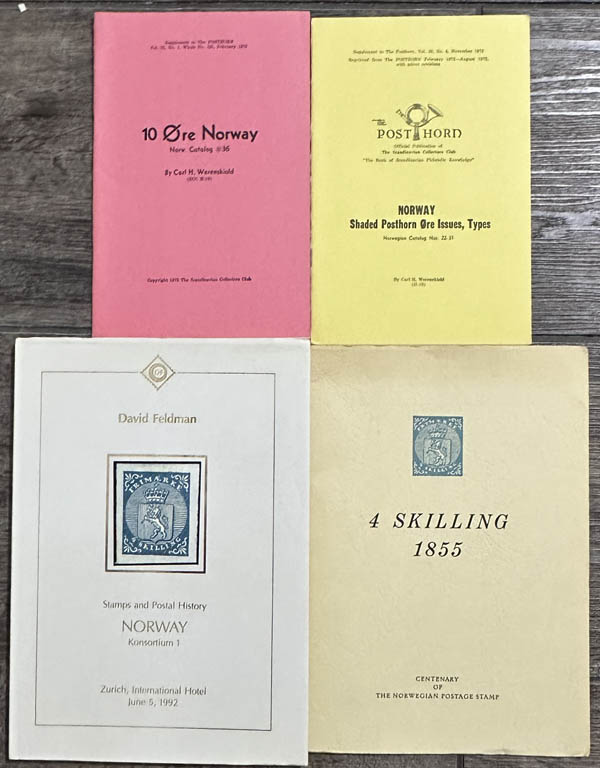 Lote 436![]() Nordic Countries, includes Catalogus der Punstempels van Nederland (2nd edition); 2 hand books - Norway: Shaded Posthorn Ore Issues, Types; 10 Ore Norway; 4 SKilling 1855 Centenary of the Norwegian Postage Stamp; plus a copy of the Norway "Konsortium 1" Auction catalogue 1992 with prices realized; Handbook of the Icelandic Postal Stationery; 2 handbooks 1976 Greenland Pakke Portot 1905-1938 and Postage Stamps after 1938; Greenland Postmarks since 1938; The Christmas Seals of Denmark and the Danish Wets Indies; Danish West Indian Postal Rates 1856-1917; Danske Nummerstempler 1852-1884; Danmark 1875 Ovalklicheer 16 Ore; Danish Postal Rates 1624-1965; and Danske Essays OG Provetryk 1849-1902; an interesting array of 15 various works; all the covers are imaged on the website. Estimate $75 - 100. |