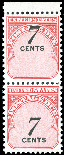 Postage Due, 1959, 7¢ carmine rose & black (Scott J95), wide spacing pair, o.g., never hinged, Very Fine. Scott $120.