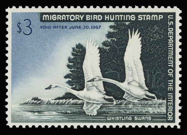 Hunting Permit, 1966, $3 Whistling Swans (Scott RW33), o.g., never hinged, Very Fine.