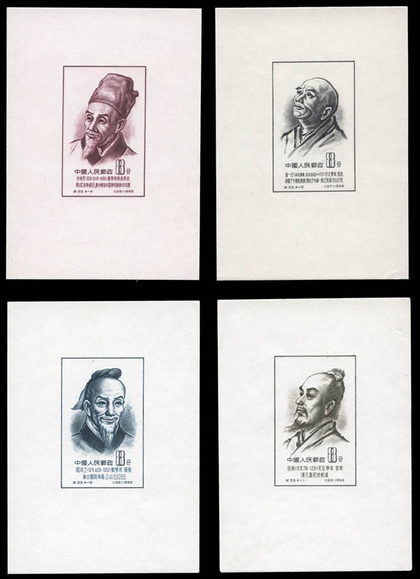 China (People's Republic), 1955, Scientists of Ancient China souvenir sheets (C33M) complete, without gum as issued, Very Fine. Scott 245a-248a; $260.