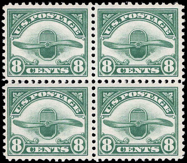 Airmail, 1923, 8¢ Propeller (Scott C4), block of 4, o.g., never hinged, Fine to Very Fine. Scott $140.