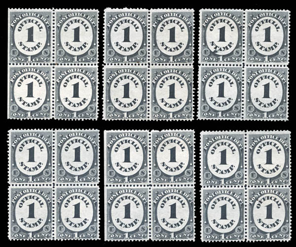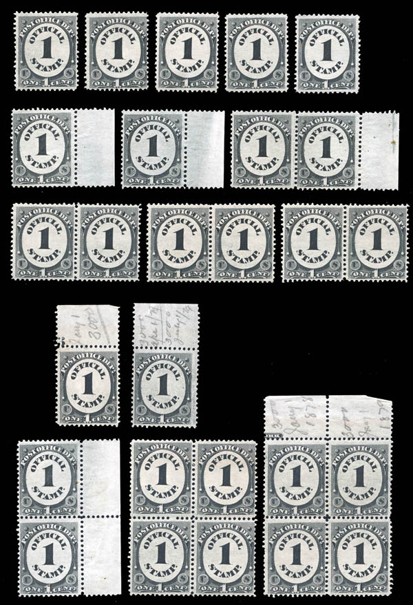 Lote 679![]() ![]() Post Office Dept., 1873, 1¢ black (Scott O47), wholesale group of 51, in singles, pairs and blocks, mostly decent centering, o.g., never hinged, generally Fine to Very Fine. Scott $3,060 as singles. Estimate $300 - 400. |