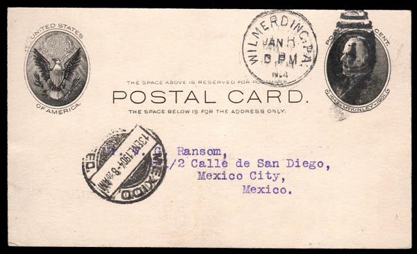 1897-1908, 4 covers to Latin America, 1 cover to Brazil, 1 cover to Uruguay, 1 cover to Chile, 1 postcard to Mexico, Fine to Very Fine.