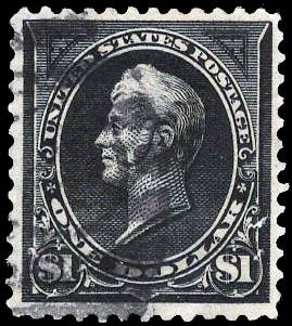 1895, $1 Perry, black, type I, D.L. watermark (Scott 276), Very Fine. Scott $100.