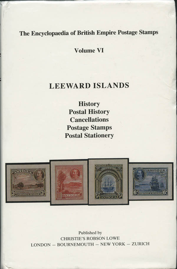Lote 823![]() [British Commonwealth] Lowe, Robson, Encyclopedia of British Empire Postage Stamps, Volume VI: Leeward Islands, 1990, hard bound, 291 pages, well illustrated in black and white, a very detailed coverage of the issues of the various islands in this group (Antigua through Virgin Islands). Like new, with dust jacket. Shipping weight 1.6 lbs / 0.7 kilo. Estimate $30 - 40. |