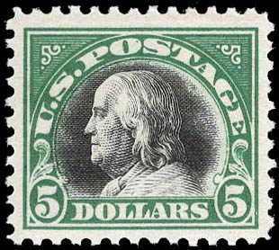 1918, $5 Franklin, deep green & black (Scott 524), bright fresh color, o.g., never hinged, Very Fine. Scott $340.
