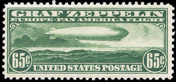 Airmail, 1930, 65¢ Graf Zeppelin (Scott C13), beau à très beau. Scott $250.