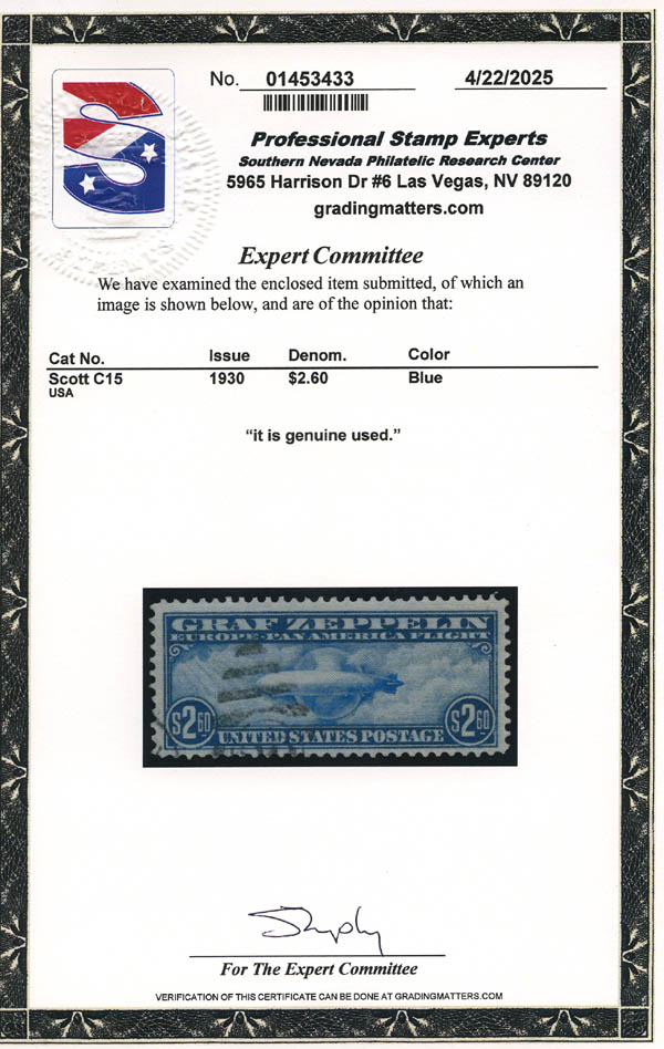 Airmail, 1930, $2.60 Graf Zeppelin (Scott C15), beau à très beau. Scott $550.