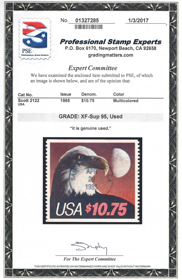 1985, $10.75 Eagle, type I (Scott 2122), superbe.