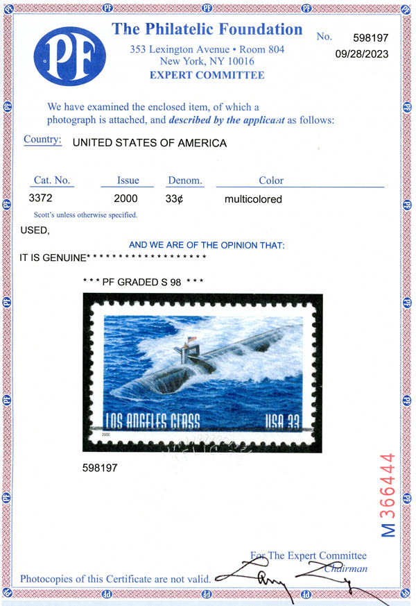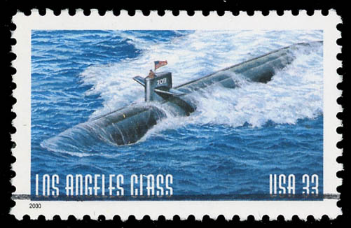2000, 33¢ "Los Angeles" Class Submarine, "USPS" microprinting (Scott 3372), superbe.