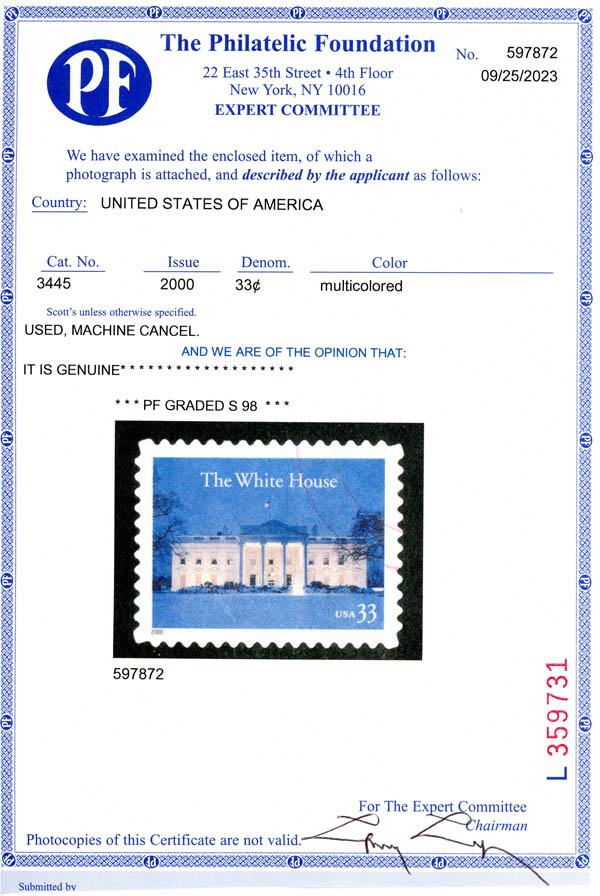 2000, 33¢ White House (Scott 3445), superbe.