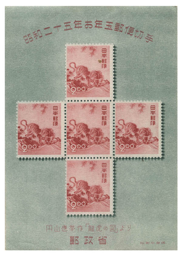 Japan, 1950, New Year's Greeting souvenir sheet (Scott 498 var.), très beau. Scott $225+. J.S.C.A. N5A.