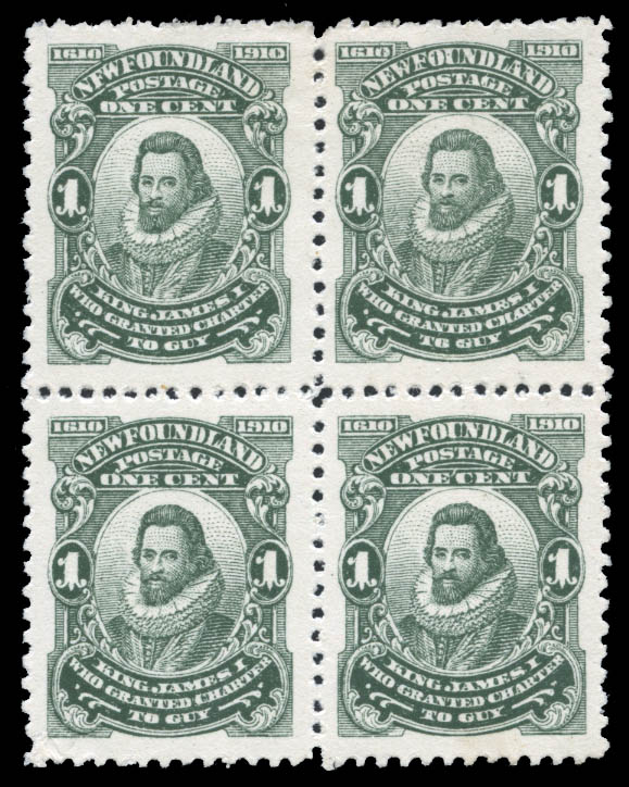 Canadian Provinces: Newfoundland, 1910, 1¢ Guy Tercentenary, perf 12 x 11, "NFW" for "NEW" variety (Scott 87 var.), très beau. Unitrade 87xii, 87ix, 87; C$151 ($120).