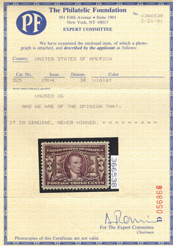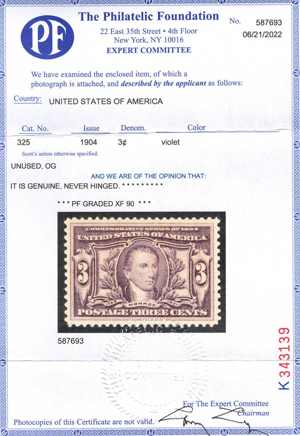 1904, 3¢ Louisiana Purchase (Scott 325), XF 90. Scott $170. Scott Stamp Values $450. SMQ $475.