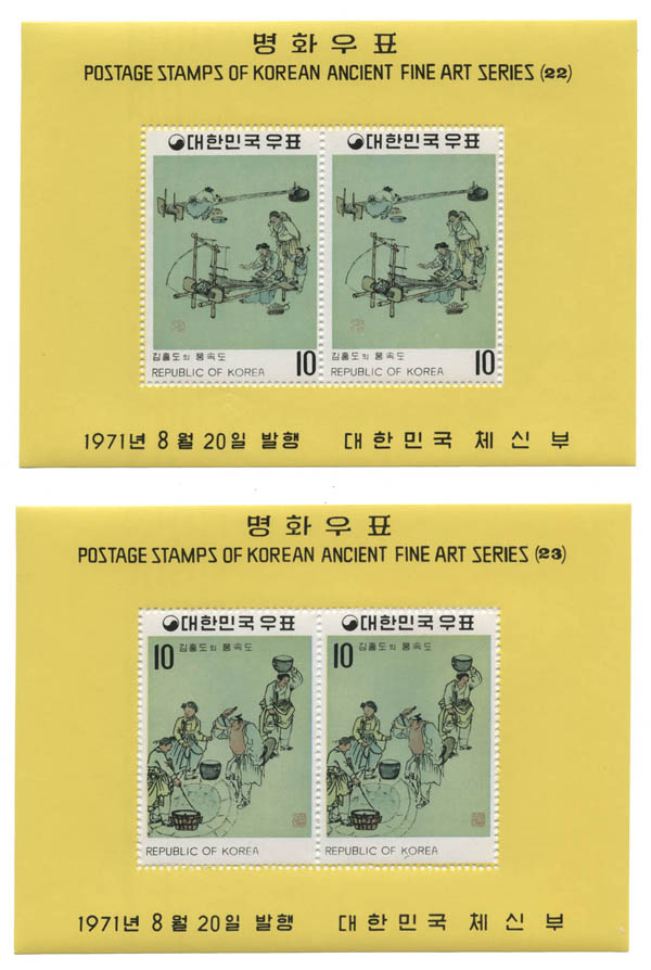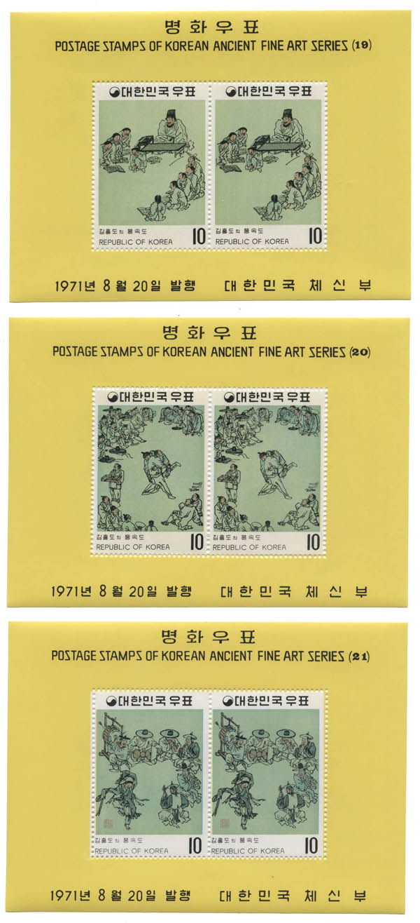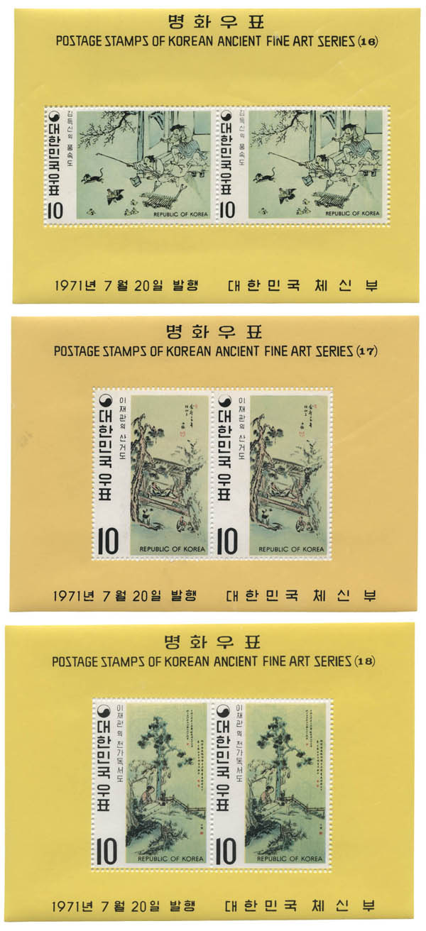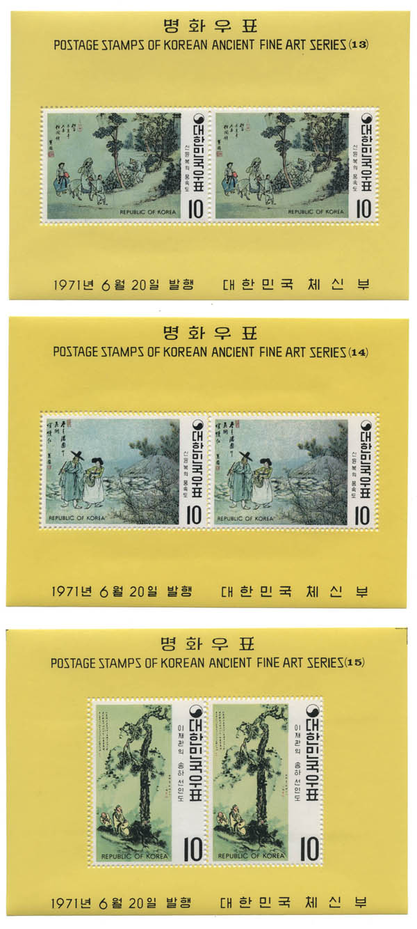Korea (South), 1971, Ancient Fine Art Series souvenir sheets complete (Scott 781a-794a). Scott $153.