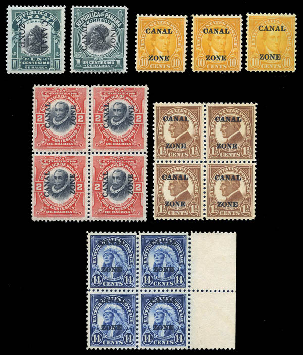 Lot 1237![]() ![]() ![]() Canal Zone, 1909-28, a selection of mostly blocks of 4, beau à très beau. The lot also contains a small selection of the Philippine 1925 imperf issue in blocks (not counted). Scott $642. Estimate $120 - 180. |