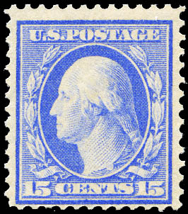 1911, 15¢ Washington, pale ultramarine, S.L. watermark (Scott 382), beau. Scott $500.