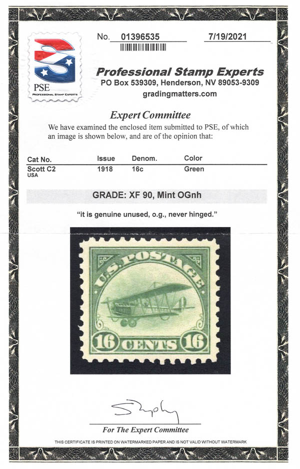 Airmail, 1918, 16¢ Jenny (Scott C2), XF 90. Scott $120. SMQ $160.