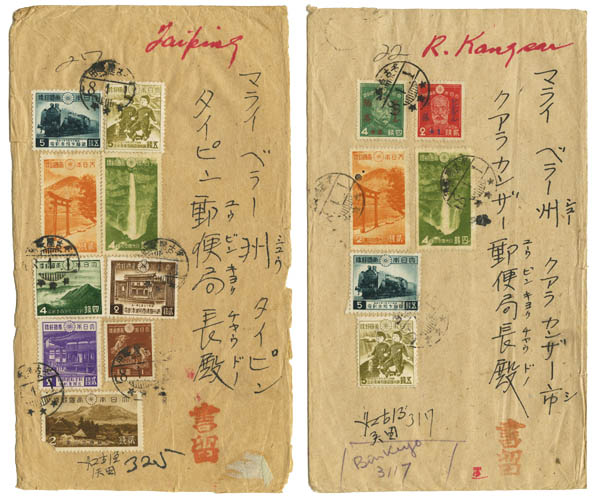 Japanese Occupation of Burma and Malaya, 1943-44, six covers, beau à très beau.