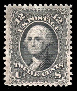 Lot 149 E 1867, 12¢ N.B.N.C. "Z" grill essay, on pale rose paper, in black (Scott 85E-E1h), perf. 12, rich color and impression amid large margins, without gum as issued, Very Fine to Extremely Fine, with 2013 P.F. certificate. Scott $250. Estimate $150 - 200. |