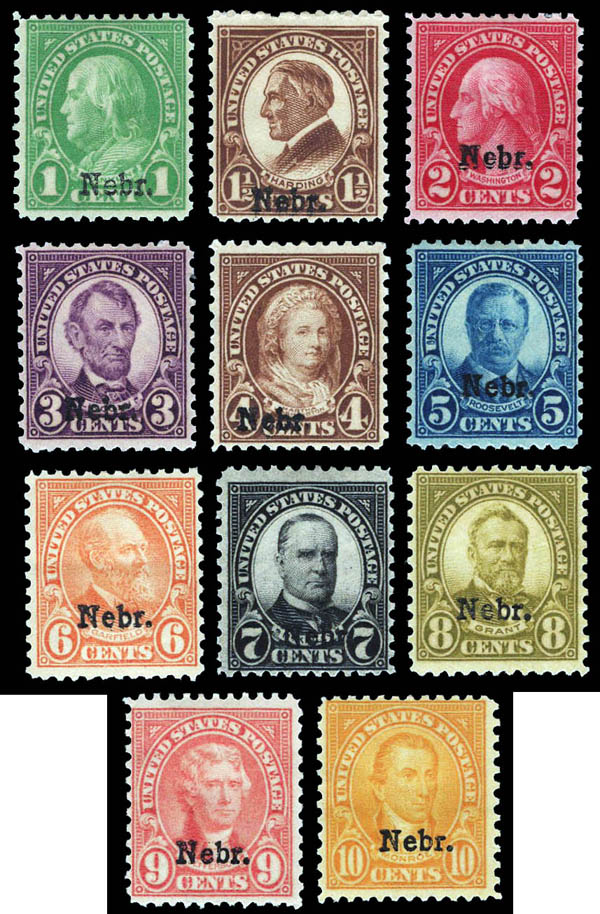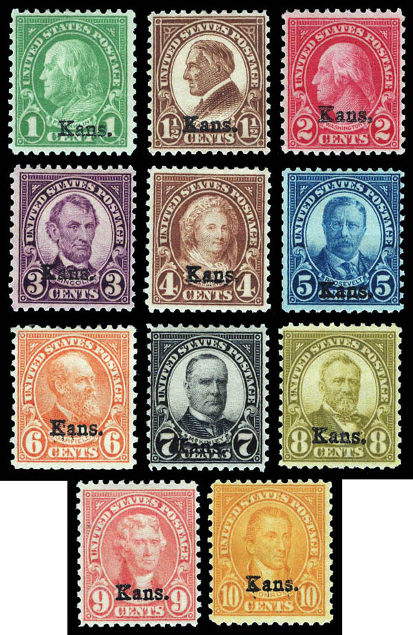 1929, Kans., 1¢ to 10¢ and Nebr., 1¢ to 10¢ both complete (Scott 658-668, 669-679), two sets of 11, beau à très beau. Scott $476.