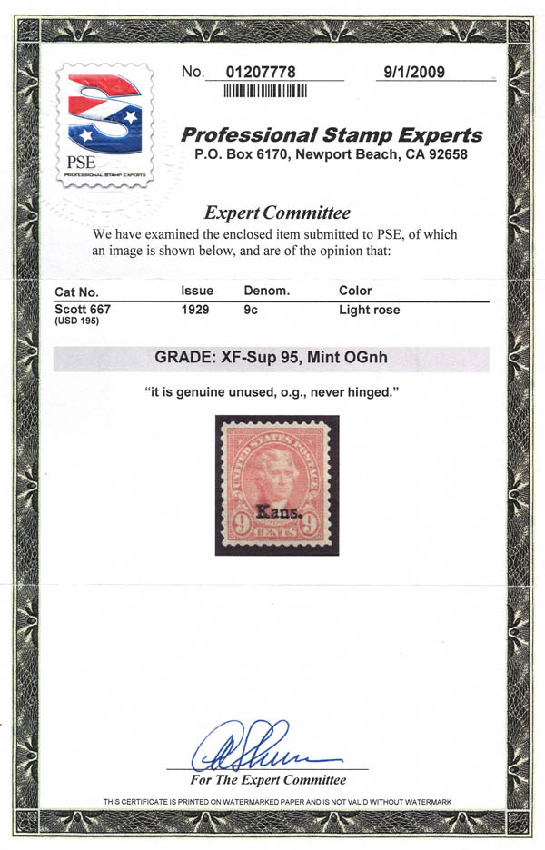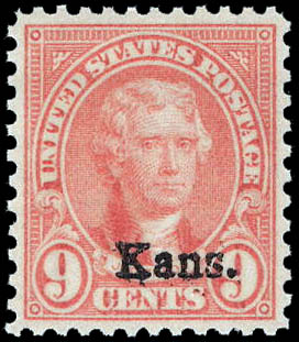 1929, 9¢ Kans. (Scott 667), XF-SUP 95. Scott $28. SMQ $195.