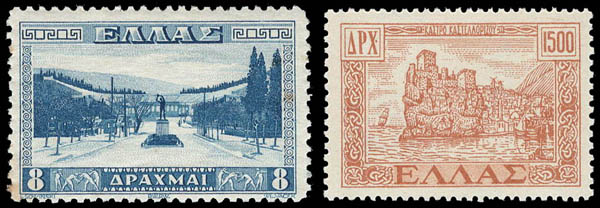 Greece, 1934, 8d Athens Stadium, and 1950, Return of the Dodecanese to Greece (Scott 381, 525-534), très beau. Scott $350.