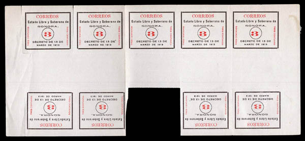 Mexico, 1914, Sonora Issue, 3¢ black and red, with colorless roulette (Scott 325), beau à très beau. Scott $878.