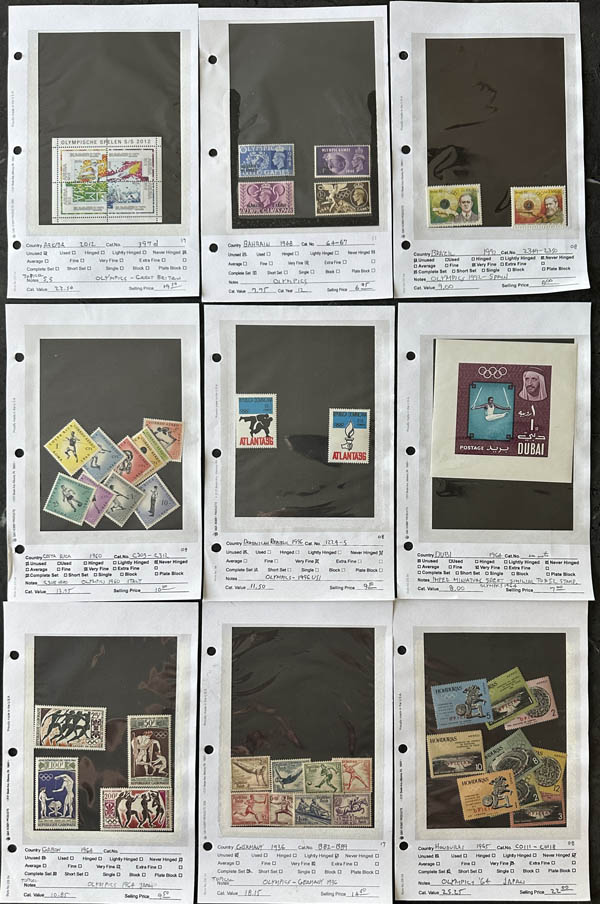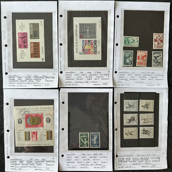 Worldwide, 1936-2008, Olympic Games, a group of singles, blocks, souvenir sheets and sets from A to Z, très beau. Shipping weight 3 lbs / 1.35 kilos. Scott $935.