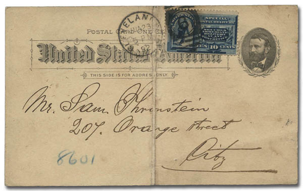 Special Delivery, 1888, 10¢ blue (Scott E2), sinon beau. Scott $135.