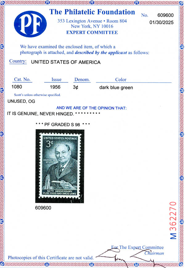 1956, 3¢ Pure Food & Drug Laws (Scott 1080), SUP 98. SMQ $65.