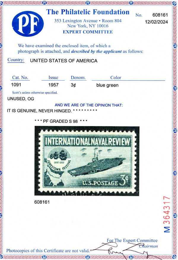 1957, 3¢ International Naval Review (Scott 1091), SUP 98. SMQ $60.