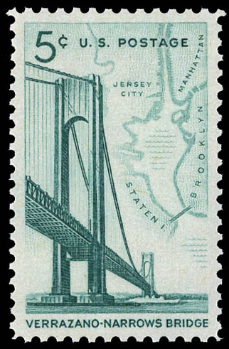 1964, 5¢ Verrazano-Narrows Bridge (Scott 1258), superbe.